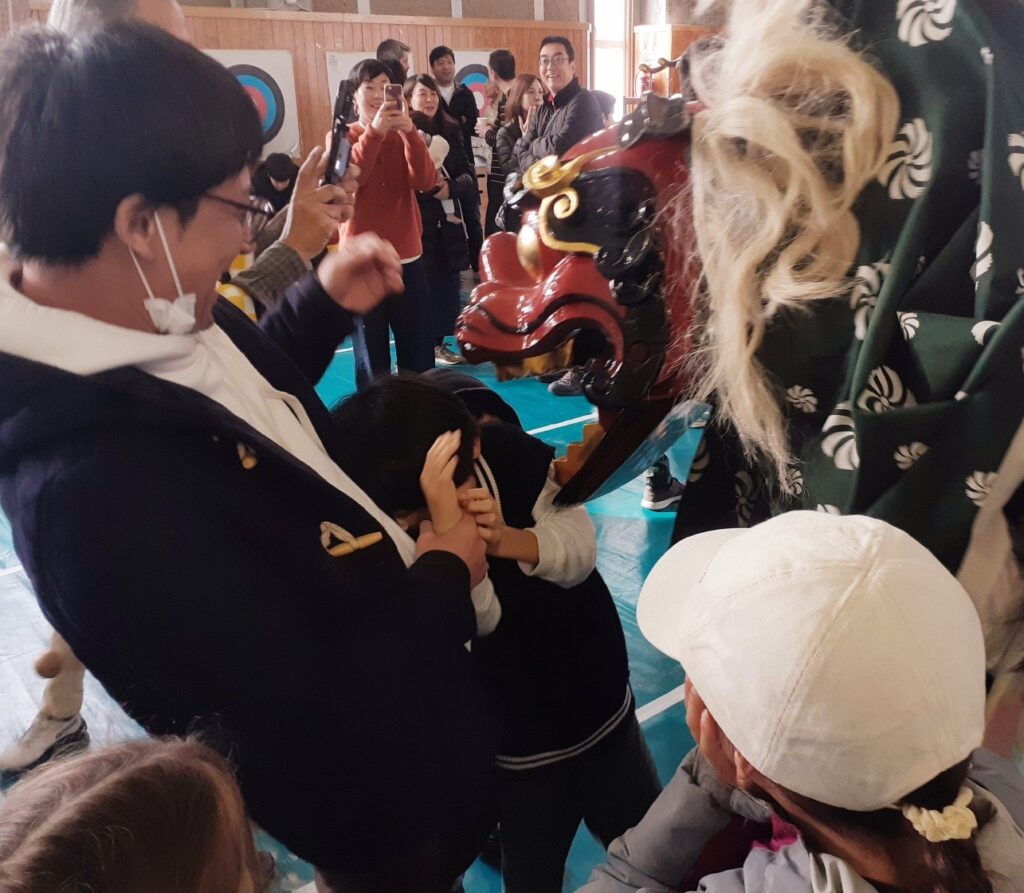 、多くの子供達が臼を囲み、順番に並んで真剣な表情で杵を振り下ろす姿がとても印象的